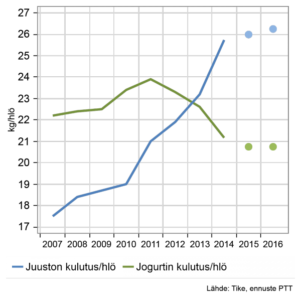 Alkuvuodesta edelleen voimakkaasti laskenut maidon tuottajahinnan lasku pysähtyy loppuvuodesta. Myös viime vuonna alkanut sianlihan tuottajahinnan lasku päättyy. Viljan hinnoissa nähdään syksyllä pieni nousu, mutta viime vuosien ennätyssadot ja kohtuullisen korkeana pysyvä tuotantomäärä hillitsevät hinnan nousua. Huolimatta laskun pysähtymisestä, tuottajahinnoissa jäädään viime vuotta matalammalle tasolle.