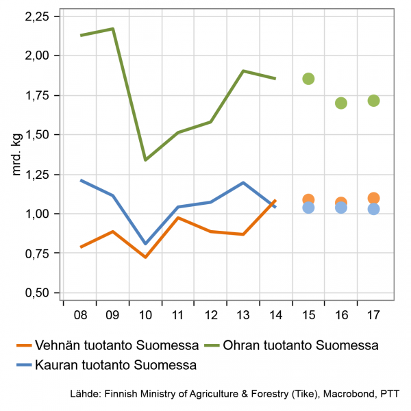 | Viljan tuotanto* | -4 % | 1 % |